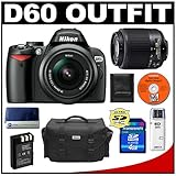Check Amazon Price and Read More Reviews on Nikon D60 Digital SLR Camera with 18-55mm AF-S VR Zoom Lens + Nikon 55-200mm AF-S Zoom Lens + 4GB SD Card + EN-EL9 Battery + Case, Bonus Accessory Kit